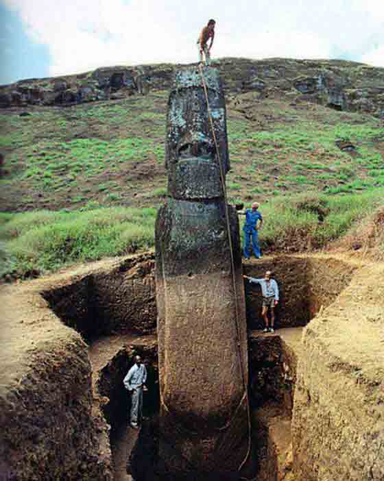 Szóval rengeteg rejtély lengi körbe a Húsvét-szigetet. Azonban a rejtély még nagyobb lett, hiszen kiderült az is, hogy ezek a szobrok nemcsak egyszerű fejek, a szobroknak ugyanis testük is van. Persze ezek nem kidolgozott, megmunkált, szabályos testformák, inkább csak arra szolgálnak, hogy be tudják ásni őket a földbe.