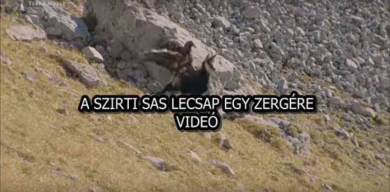 Ebben az esetben viszont egy kicsit máshogy alakult a vadászat, a sas ugyanis egy elég nagyméretű zergét szeretett volna elkapni. A sas lecsapott és megragadta az éles karmaival az állatot, azonban nem sikerült felemelnie, a zerge pedig menekülni kezdett, rohant le a sziklákon, ugrált, és bukfencezett, hogy a sast lerázza magáról.