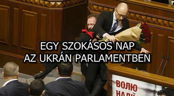Ukrajnában természetes, ha látunk egy-egy parlamenti bunyót. Ennek már szinte hagyománya van. Ott bizony ha nem tetszik valakinek valami, könnyen előfordulhat hogy egymásnak támadnak. (sokan jogosan mondhatnák, hogy ott legalább csinálnak valami értelmes dolgot is a "politikusok" 🙂 A nép az adófizetők pénzéért legalább cirkuszt láthat, még nálunk évtizedeken keresztül csak a folyamatos hazugság jut a népnek minden párt részéről.. )