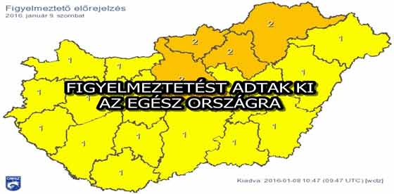Az Országos Meteorológiai Szolgálat szerint, Pest, Borsod-Abaúj-Zemplén, Heves és Nógrád megyében narancs színű, azaz másodfokú figyelmeztetés lesz érvényben szombaton az ónos eső miatt, a többi megyében pedig citromsárga figyelmeztetés van a tartós, sűrű köd miatt.