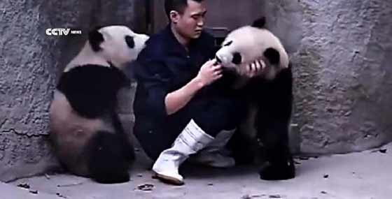 Látszik hogy a gondozónak nagy türelme van a pandákhoz és ő is élvezi a játszadozást. A videó végére a gondozónak sikerült beadnia a gyógyszert de láthatóan nem egyszerű feladat megküzdeni két pandaboccsal.