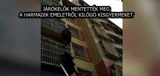 A járókelők mentették meg egy kisgyermek életét, aki a harmadik emeletről lógott ki.