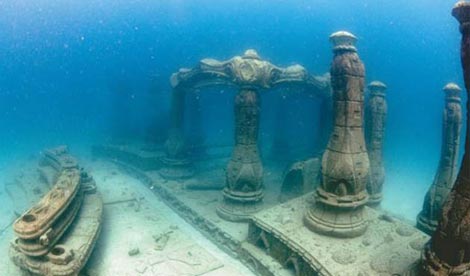 Ráadásul a víz alatt kialakított sírhelyek olyan látványt nyújtanak, mintha Atlantisz elveszett kontinensén egy park maradványai lennének.