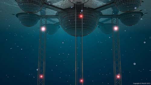 A hatalmas gömbökből álló víz alatti állomás teljesen független a környezetétől, ugyanis a benne lévő ökoszisztémák a levegőt, az élelmet és az energiát is biztosítják. Egy londoni tervező, Phil Pauley úgy véli, hogy az embereknek ideje leköltözniük a víz alá, ezért egy száz ember ellátására alkalmas víz alatti várost tervezett.