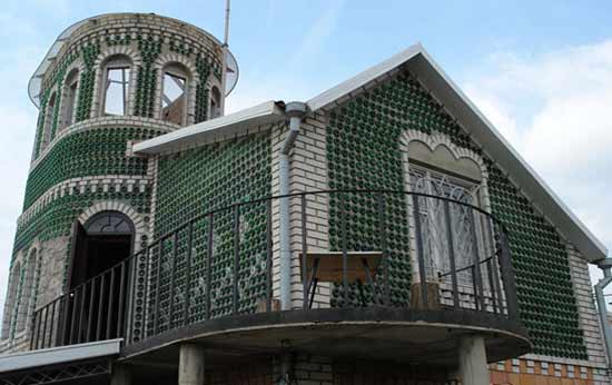 Kiürült pezsgőspalackokból épített házat magának egy ukrán férfi, aki azt állítja: ez a legolcsóbb építőanyag, és ráadásul kiváló hőszigetelő. 25 ezer pezsgősüveg felhasználásával építette fel emeletes családi házát a Lviv megyei Boberka községben élő Vladimir Bizsik.