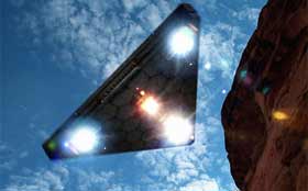 “Az a valami bumeráng vagy V-alakú volt, és halk zümmögést hallottam felőle. A végén háromszög alakú farokféle látszott, amin szintén fények villogtak. Olyan hatalmas volt, hogy szinte az egész égboltot betöltötte.”