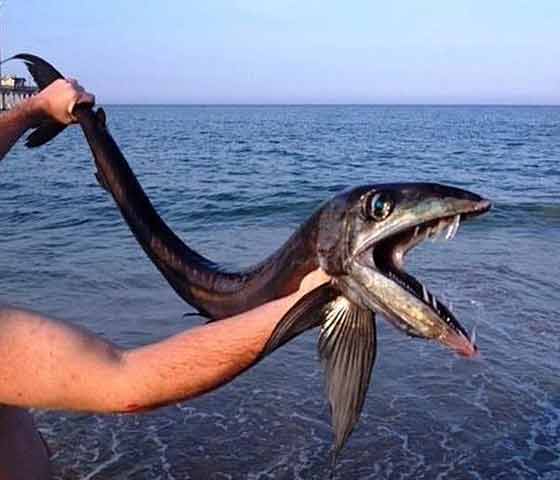 A még élve partra került hal latin neve Alepisaurus ferox, a sugarasúszójú halak osztályába sorolható, 2 méter hosszúra is megnőhet, és a nyílt óceánok éjszakai ragadozóinak egyike, ami ritkán bukkan fel partközelben.