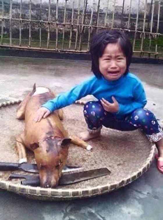 Az interneten vírusszerűen terjed az a megrázó fotó, amelyen egy vietnami kislány látható. A gyerek zokogva térdel kedvence mellett, mikor felismeri a piacon.