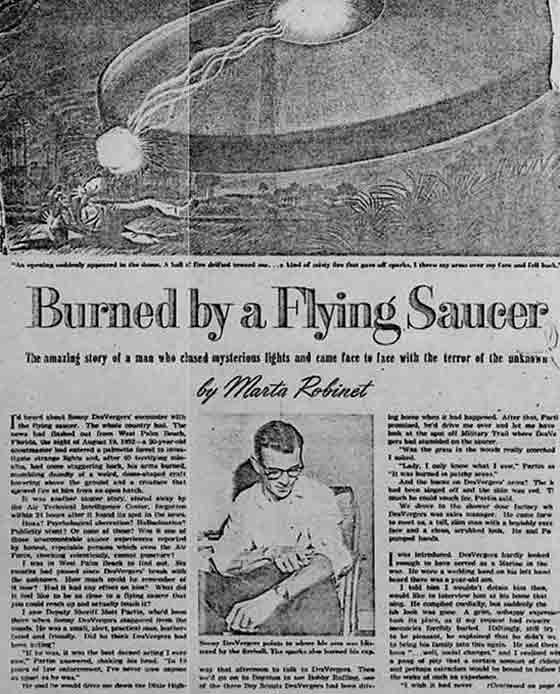 Desvergers, csapatának három cserkészével együtt észrevett egy UFO-t egy tisztáson, a műút mellett, West Palm Beach közelében 1952. augusztus 9-én, este kilenc óra körül. Amikor közelebb lépett, valami lángszerű lövellt ki az UFO-ból, ami kilyukasztotta kalapját, és őt a földhöz vágta, úgy hogy rémesen megijedt, de egyéb baja nem történt.