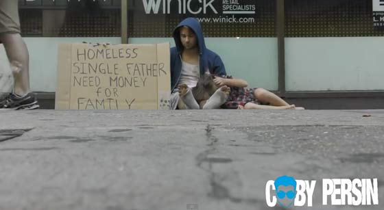 Coby Persin elhatározta, hogy próbára teszi az emberek segítőkészségét, és kíváncsi volt, hogy egy drogosnak vagy egy apának adnak e többen. Meglepő dolgot tapasztalt.